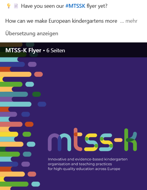 The MTSS-K research project sets out to adapt, implement and assess the effectiveness and efficiency of a Multi-Tiered System of Support in kindergarten (MTSS-K) across five European countries with the aim to reduced inequalities within the education system and strengthen pupils’ early skills in literacy, numeracy and socio- emotional behaviour.